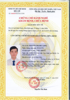 - Chứng chỉ hành nghề số: 002254/HCM-CCHN