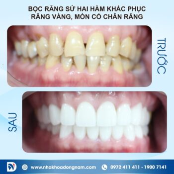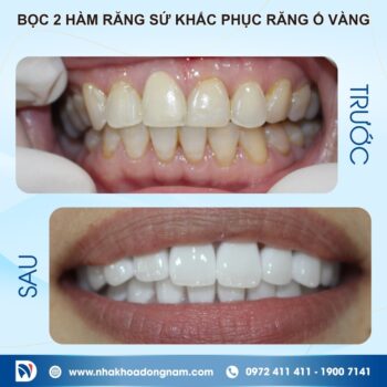 Bọc răng sứ 2 hàm khắc phục răng vàng