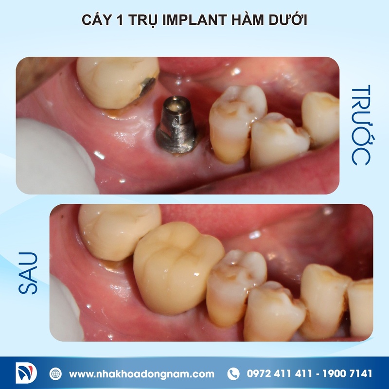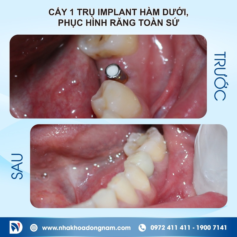 Cấy 1 trụ Implant hàm dưới phục hình răng toàn sứ