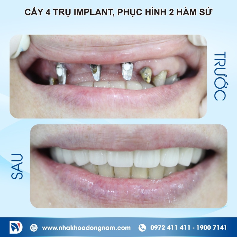 Cấy 6 trụ Implant phục hình răng sứ 2 hàm