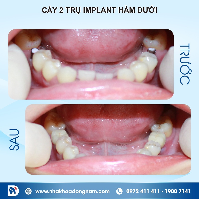 Cấy 2 trụ Implant hàm dưới phục hình răng toàn sứ
